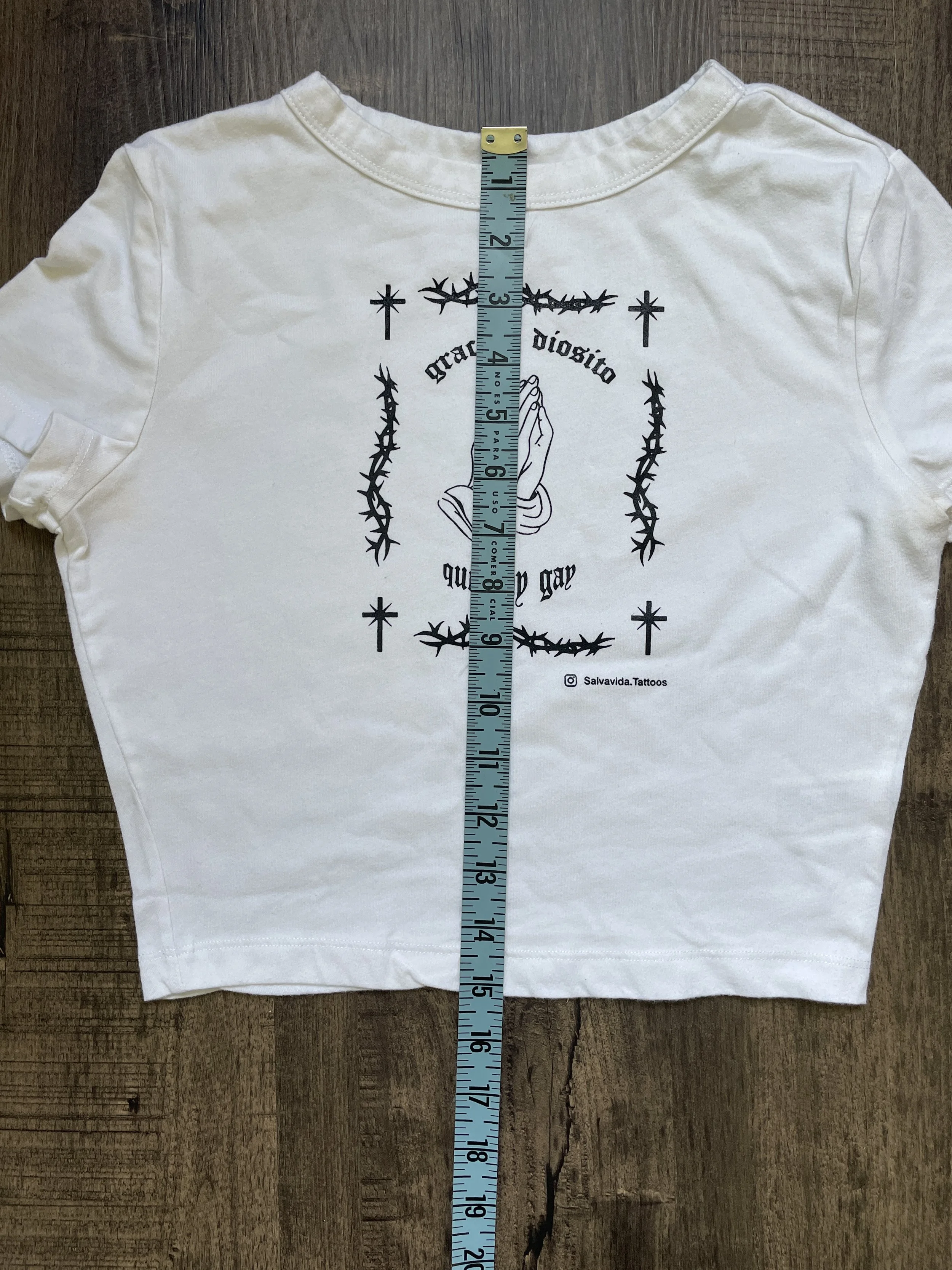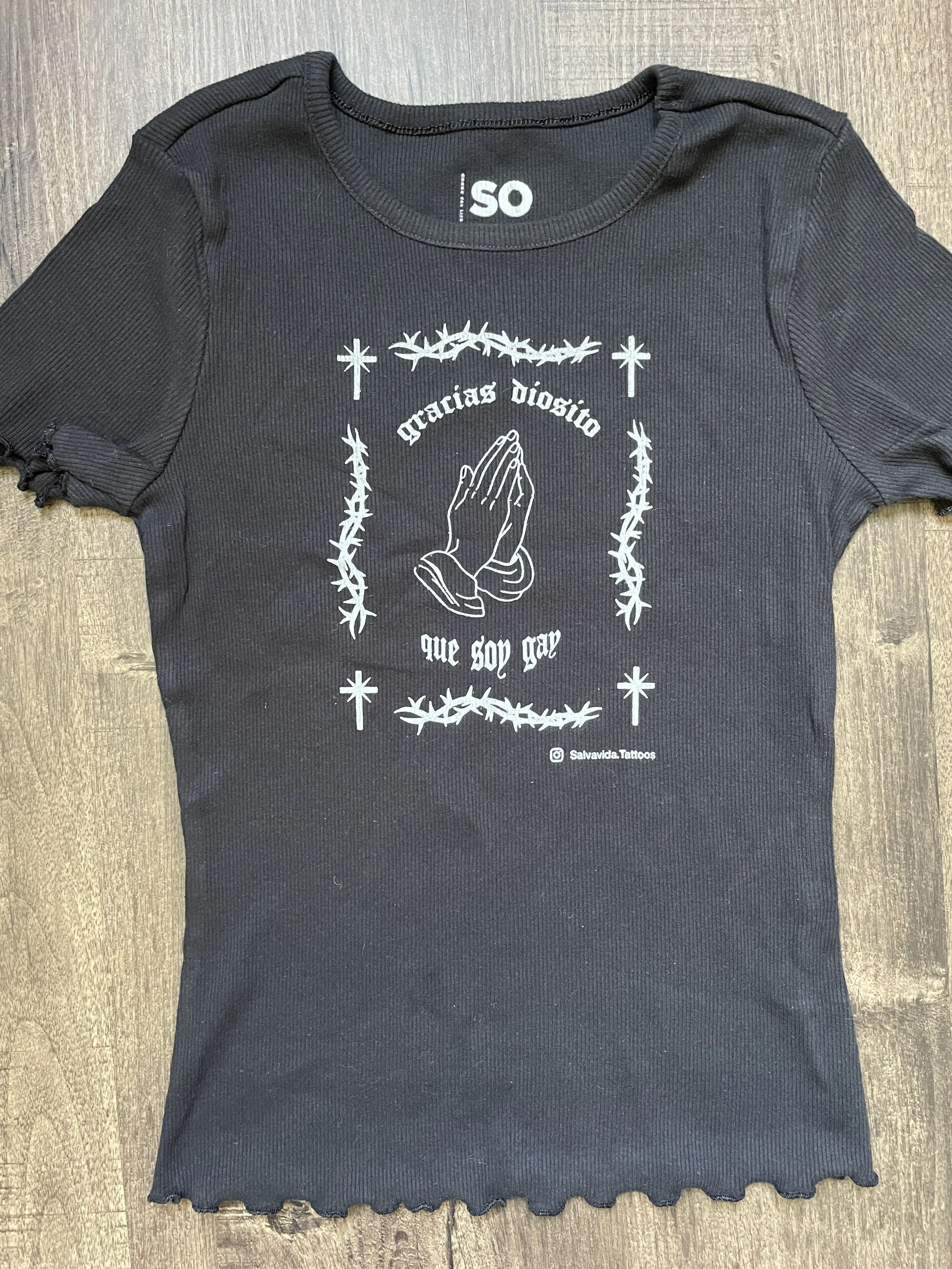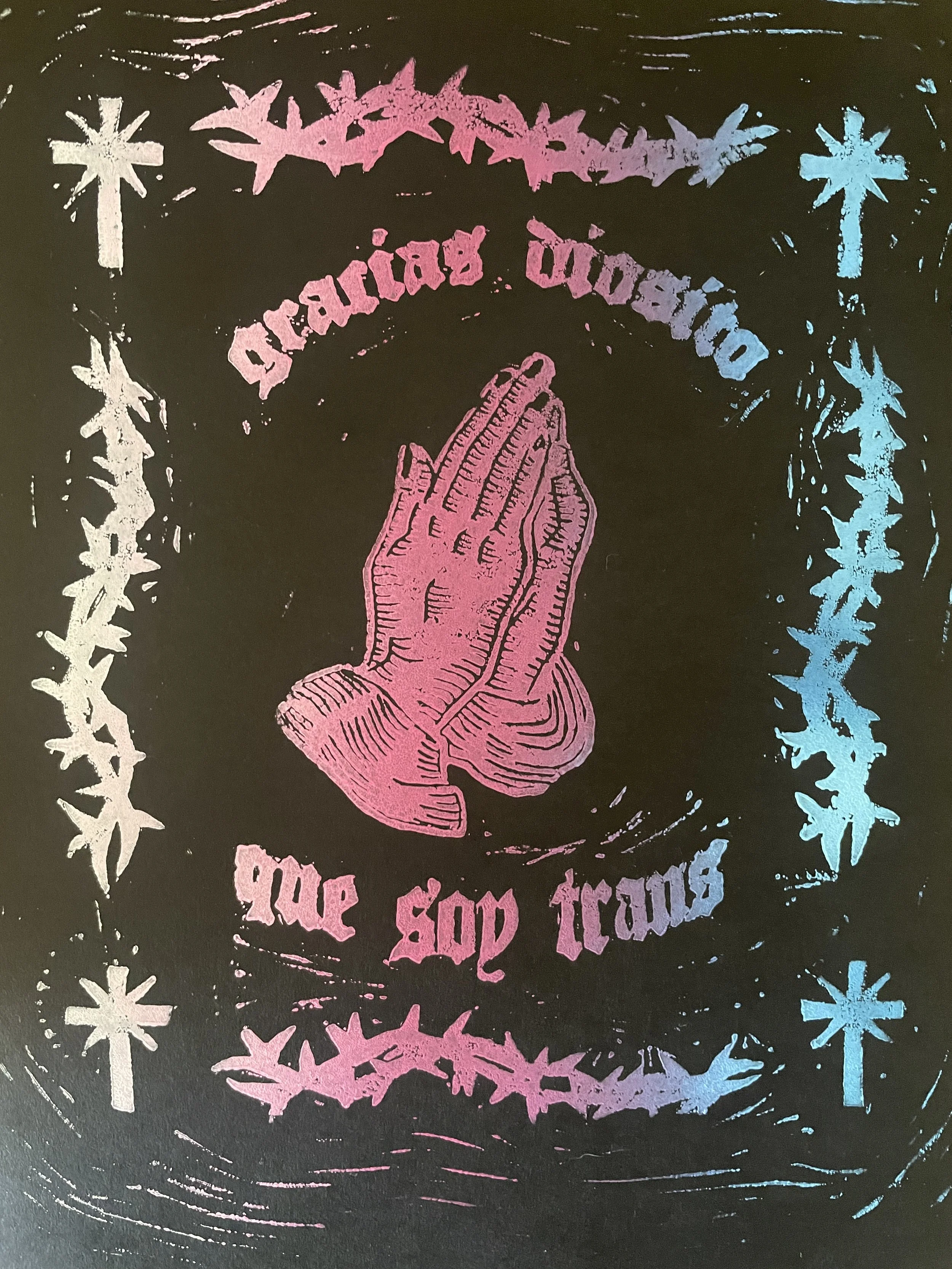 Store Gracias Diosito que soy Trans Linocut Print $25.00 "Burning Cop Car" Neon Yellow Medium $25.00 Sold out "Gracias Diosito" Black Baby Tee (XS) $25.00 "Gracias Diosito" Yellow Baby Tee (Large) $25.00 Sold out "Gracias Diosito" White Baby Tee Small $25.00 Sold out Grey and Green Baby Tee Sale Price: $20.00 Original Price: $25.00 Sold out "Gracias Diosito" Medium Baby Tee $25.00 Sold out Gracias Diosito Crop Top (Small) $25.00 Gracias Diosito Linocut Print $25.00 Trans is Sacred Print $20.00 Chinga la Migra Print $50.00